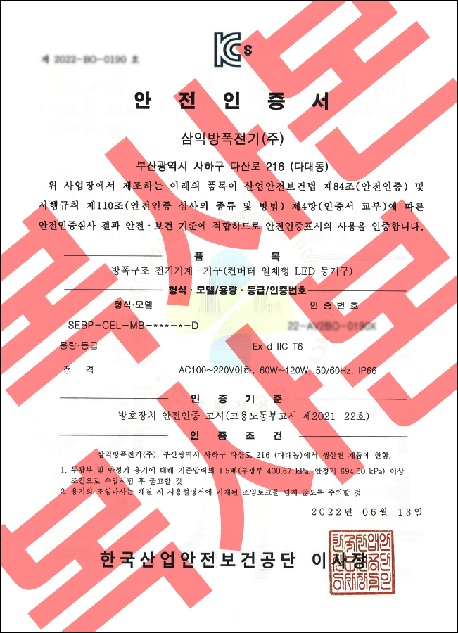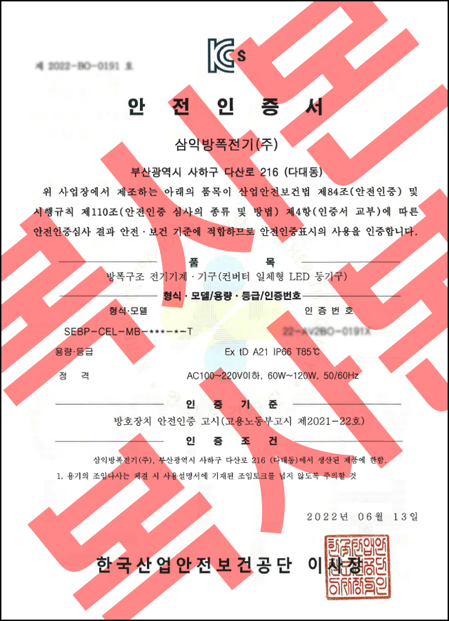 * 내압 분진 방폭형 컨버터 일체형 LED등기구 (SEBP-CEL)